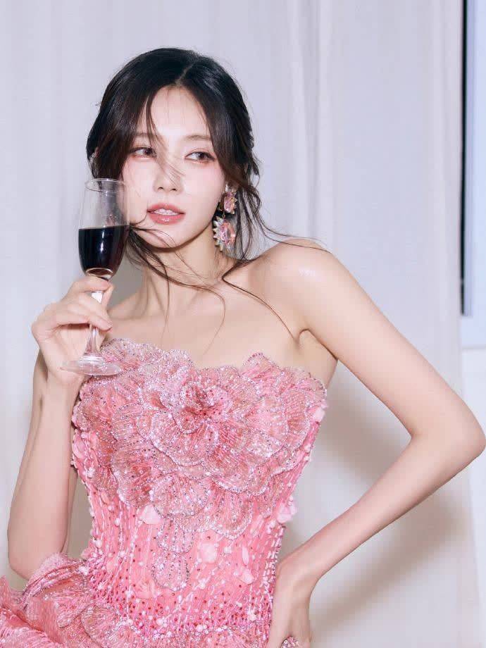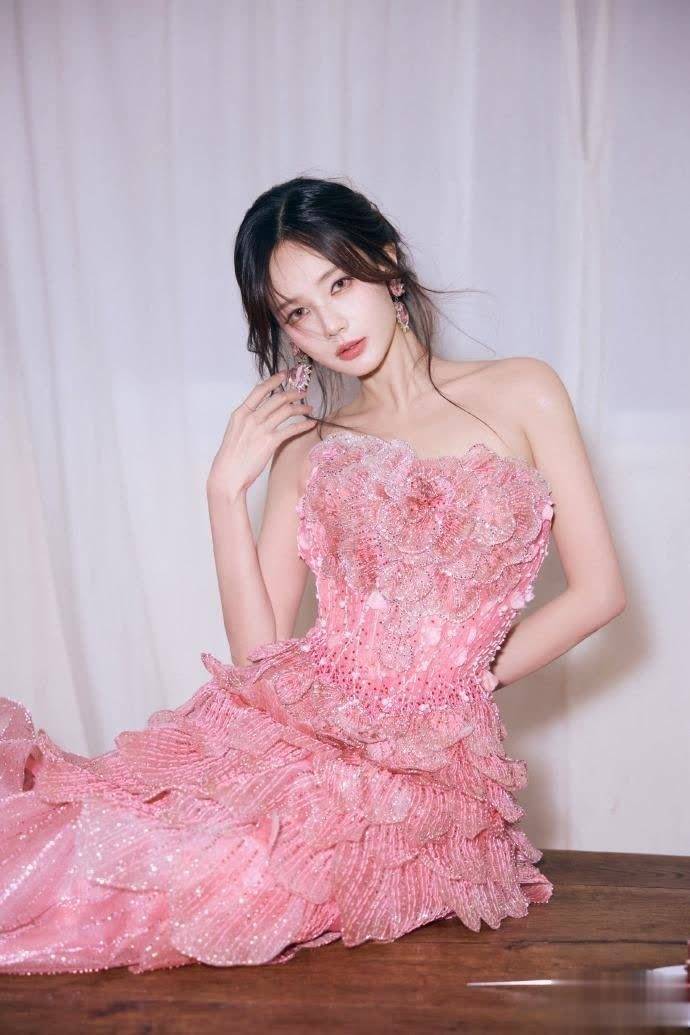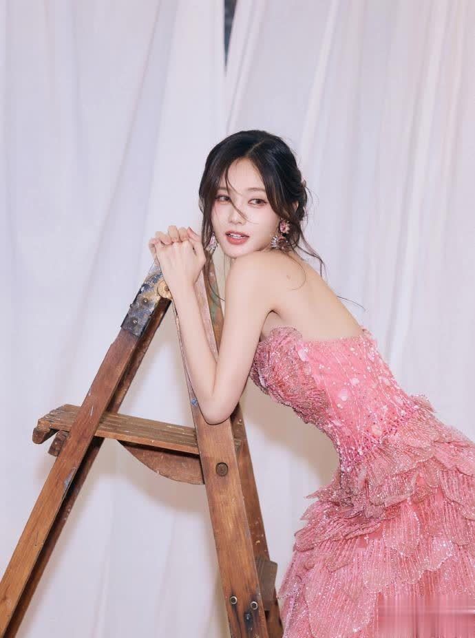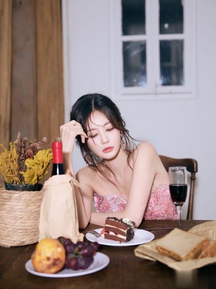 暖光斜照的木质窗边,李一桐一袭粉色抹胸礼服倚坐餐桌旁,指尖轻触额角的瞬间将温婉气质尽数释放。真丝面料与立体花朵交织的裙身,搭配她自然垂落的微卷长发,仿佛从复古油画中走出的贵族少女。手边红酒与甜点的点缀,巧妙呼应其采访中“享受生活小仪式”的宣言,165cm/45kg的纤秾合度身材在修身剪裁下勾勒出完美头身比。这位北舞毕业的山东姑娘,用十年功底练就的优雅体态,将日常场景演绎出高级时尚大片感。